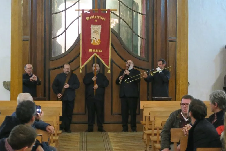 Ministriles de Marsias es propiamente un conjunto de ministriles, que es como se llamaba a los instrumentistas de viento en las capillas de las catedrales. El nombre del grupo alude a la disputa del civilizado tañedor de cuerda, Apolo, contra el ministril Marsias, bárbaro sileno que soplaba en la tibia. Tal certamen entre los instrumentos de cuerda y los de viento fue evocado por Monteverdi y otros contemporáneos al instrumentar sus obras con arreglo a la capacidad de los ministriles para imitar y sostener a la voz humana. Y no sólo por los músicos sino por ilustres pintores (Ribera, Rubens, Velázquez …) y literatos de la época.
